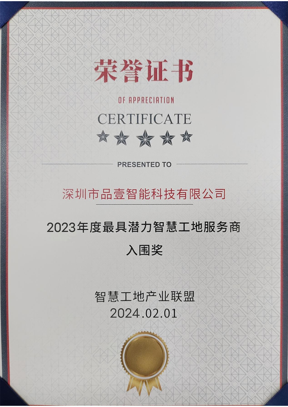 • 2023年度最 具潜力智慧工地服务商