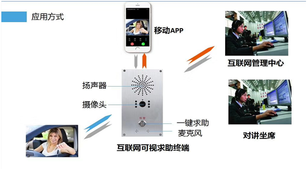 云端呼叫中心,对讲座席及手机APP同时处理呼叫求助。